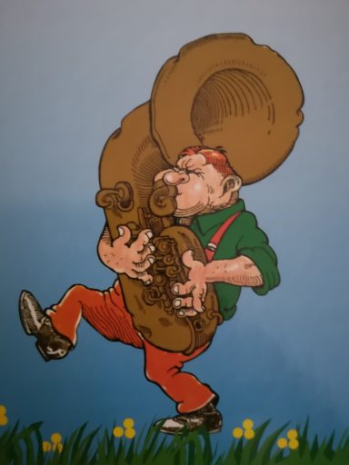 Seine braune „Tröte“, die er fest und fast liebevoll im Arm hält, ist ein bisschen verbeult. Aber das alles stört den „Trötemann“ und seine große Fangemeinde nicht: Der Rotschopf bläst ununterbrochen mit dicken Backen in sein Instrument – aber leider (oder zum Glück?) können wir ihn nicht hören, weil er nur auf Stickern und Aufklebern aktiv ist. Hans Klinz hat den kleinen Kerl vor vielen Jahren erschaffen, um dem Brauchtumsverein ein Gesicht und ein Logo zu geben. Als „Favicon“ taucht unser kleiner „Trötemann“ links in der Adresszeile vor der URL auf und gibt bei den Favoriten einen Hinweis auf den Brauchtumsverein Rheinbach.